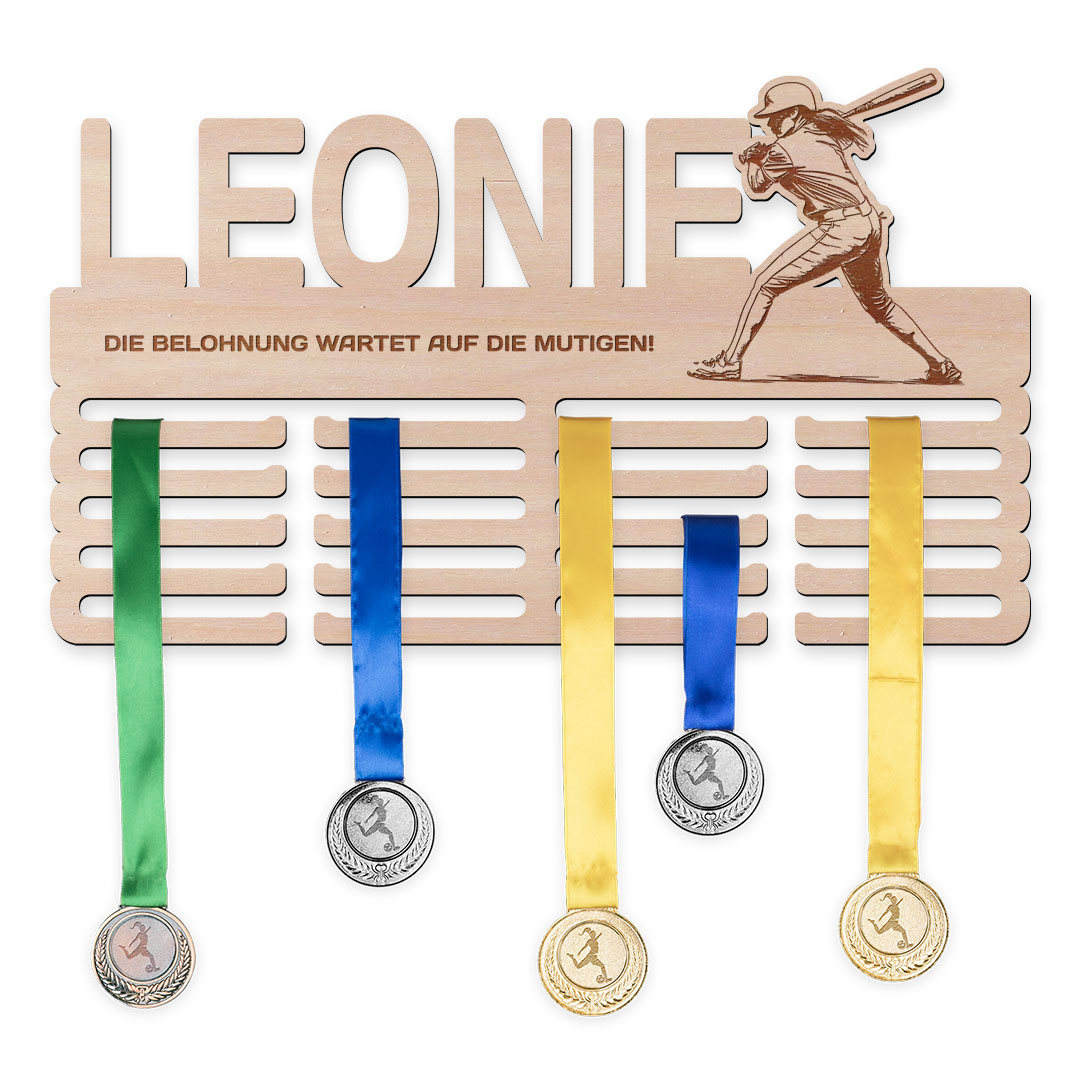 Wir fertigen Medaillenhalter maßgeschneidert nach Ihren Wünschen. Geben Sie einfach den Namen, einen motivierenden Spruch und eine sportliche Silhouette an, und wir kümmern uns um den Rest.